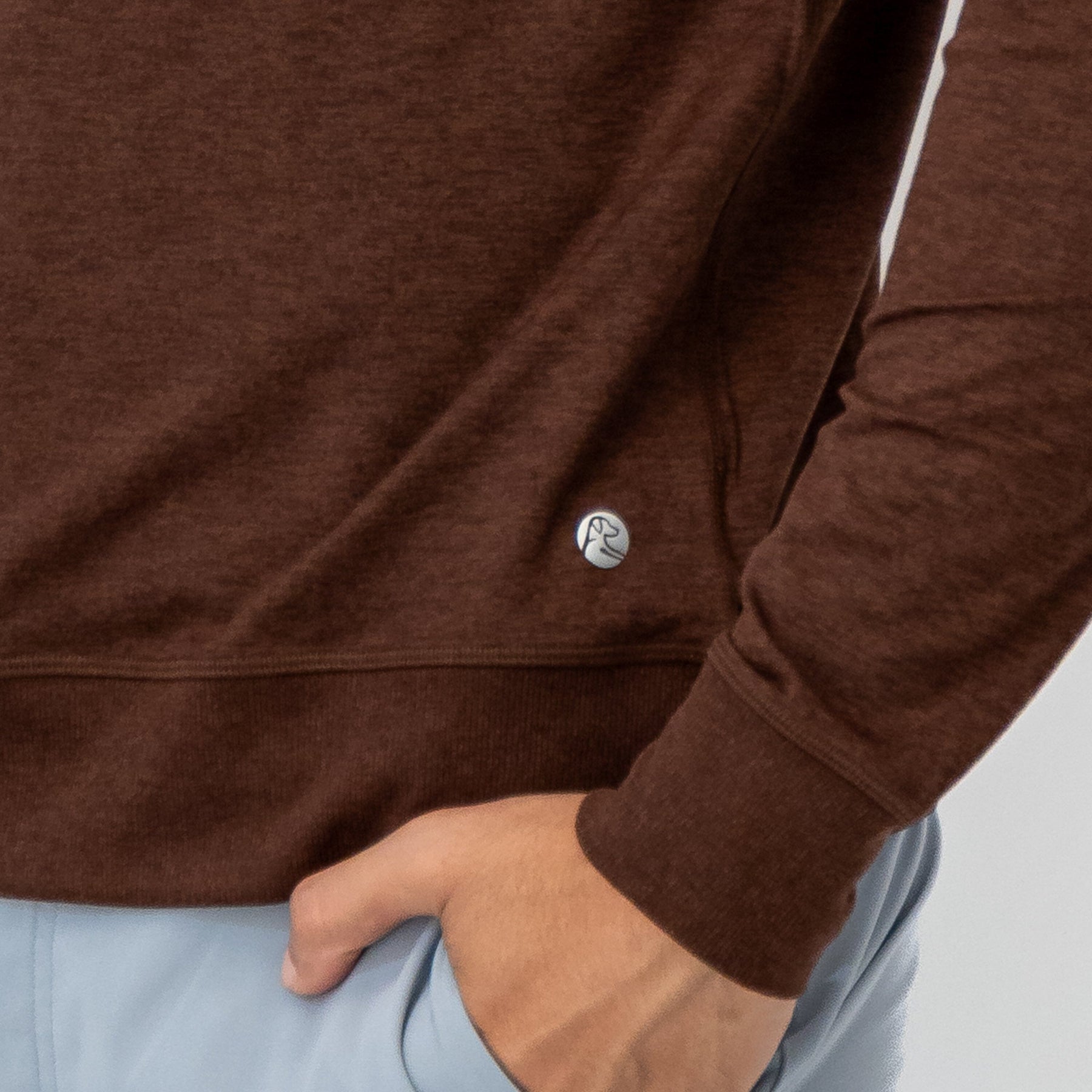 The perfect blend of comfort, style, and sustainability, the Rhoback Pace Performance Crew is incredibly soft and versatile. Made with our signature ButterFlex fabric, the Pace Crew is designed to seamlessly transition throughout the day. With four-way stretch and moisture-wicking technology, it is built for activity. Made with lightweight, recycled materials it is also environmentally friendly and exceptionally breathable. Finished with a circle dog logo, v-stich detail below the collar, and the Rhoback Ridge on the back, it fits perfectly over a Performance Tee or Polo when paired with Everyday Shorts or Joggers.