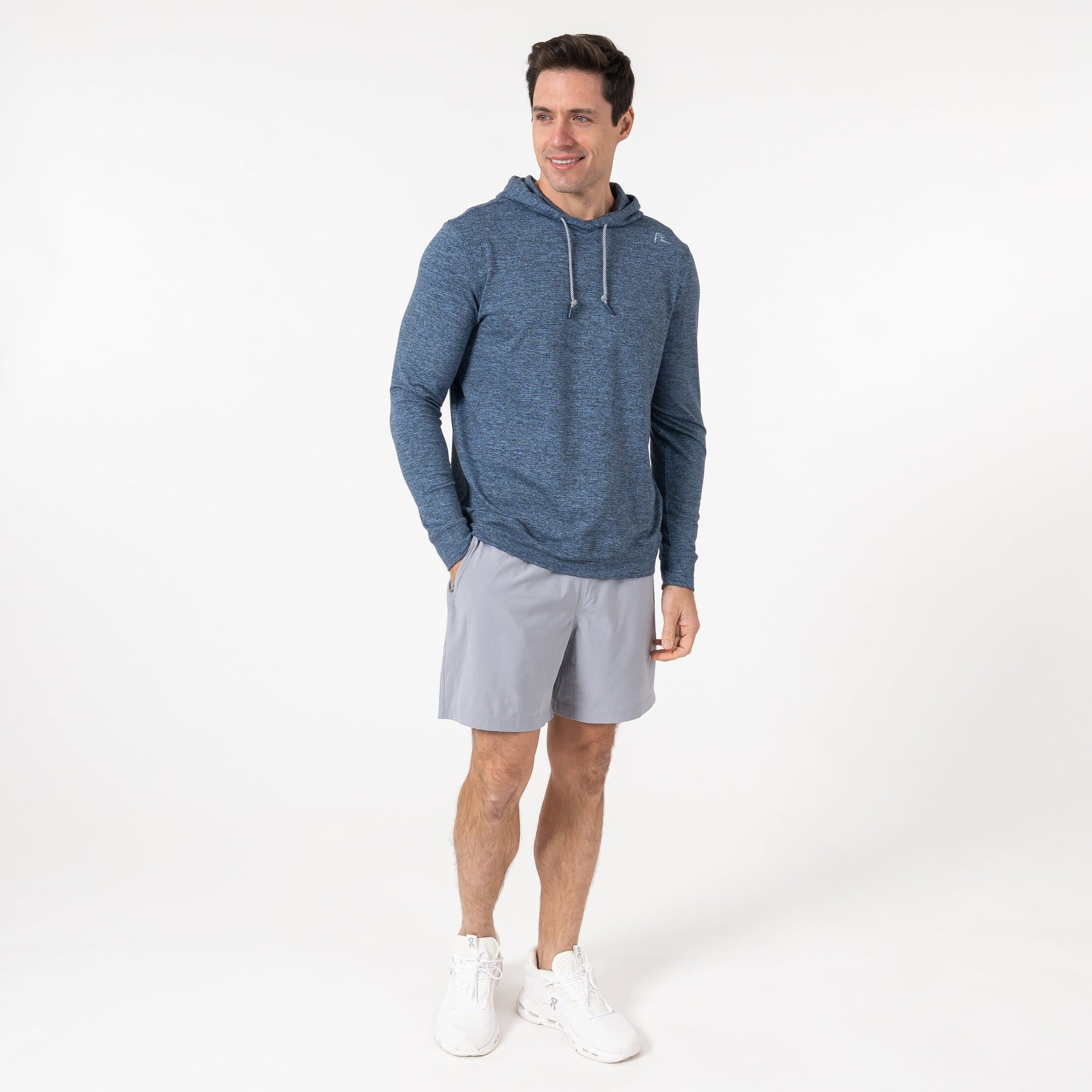 Featuring our signature VSoft™ fabric, the Hesi Performance Hoodie is designed for comfort and built for activity. The four-way stretch technology makes it easy to move in, while the moisture-wicking and breathable fabric is meant to fit your active lifestyle. Made with incredibly soft fabric and a modern comfort fit, it easily transitions throughout the day. Finished with an embroidered dog logo on the left shoulder and a grosgrain Rhoback Ridge on the hood, this hoodie pairs great with the Delta Performance Jogger and Grit Gym Shorts.