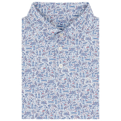 The Hops Floral | Performance Polo | The Hops Floral - White/Short Stop Blue