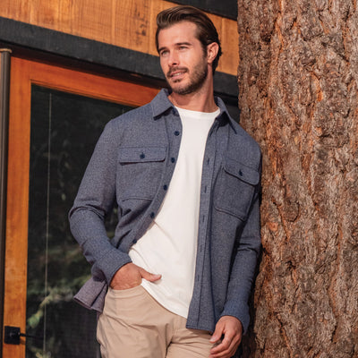 Sheffield Shirt | The Herringbone Jacquard - Fleet Navy/White