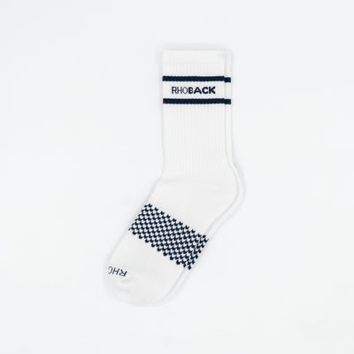 Stratus Performance Crew Socks | Solid - White - Fleet Navy/Fleet Navy