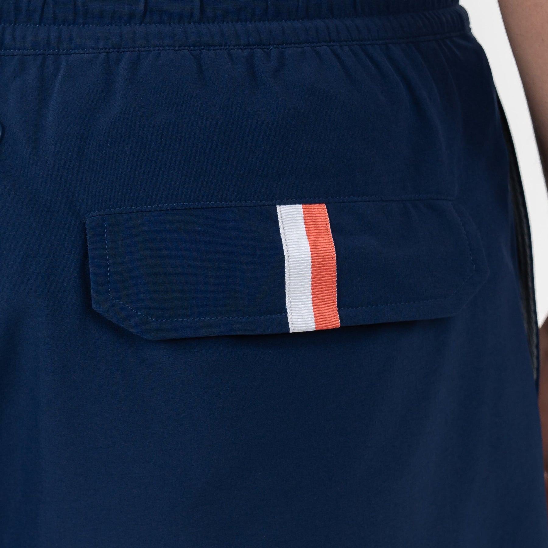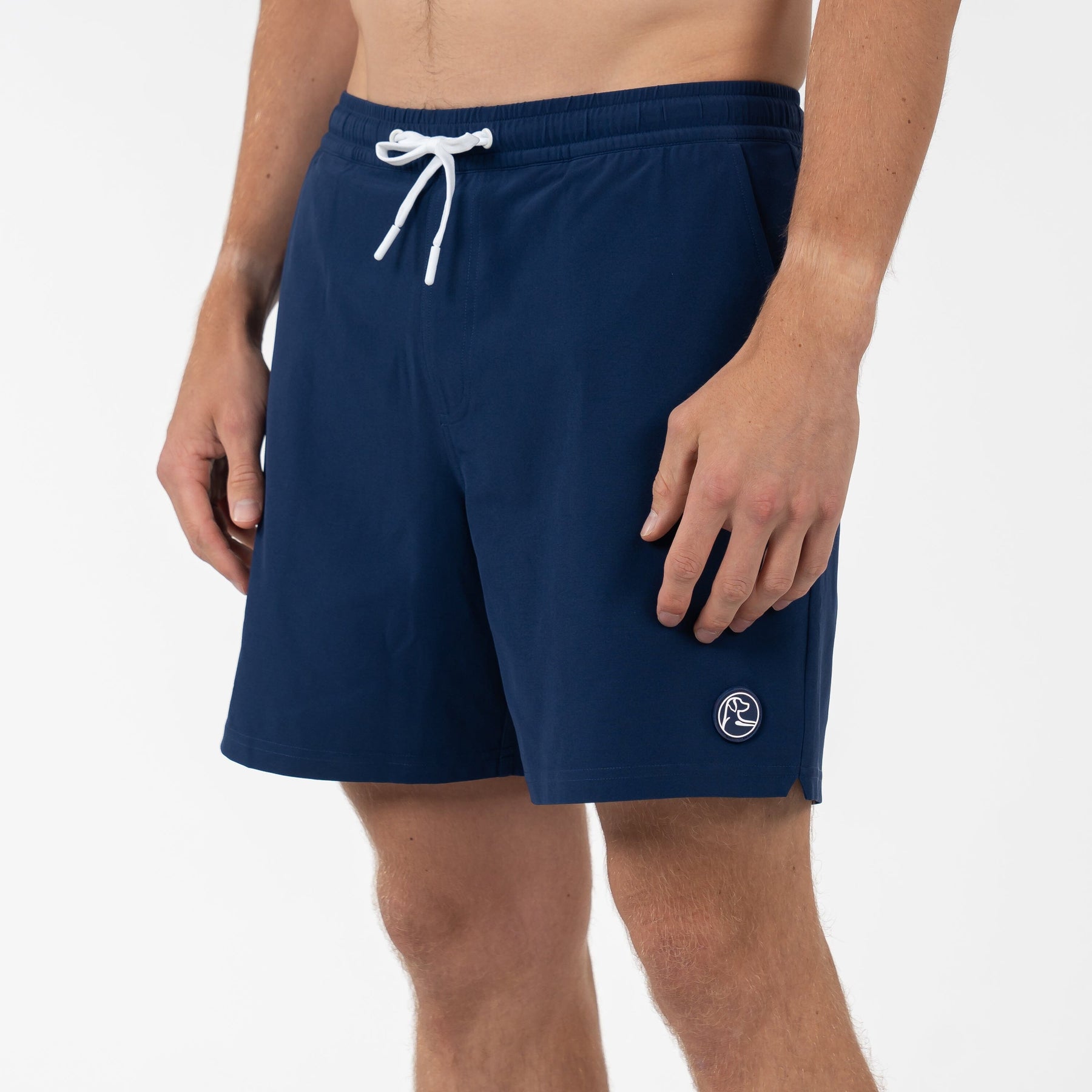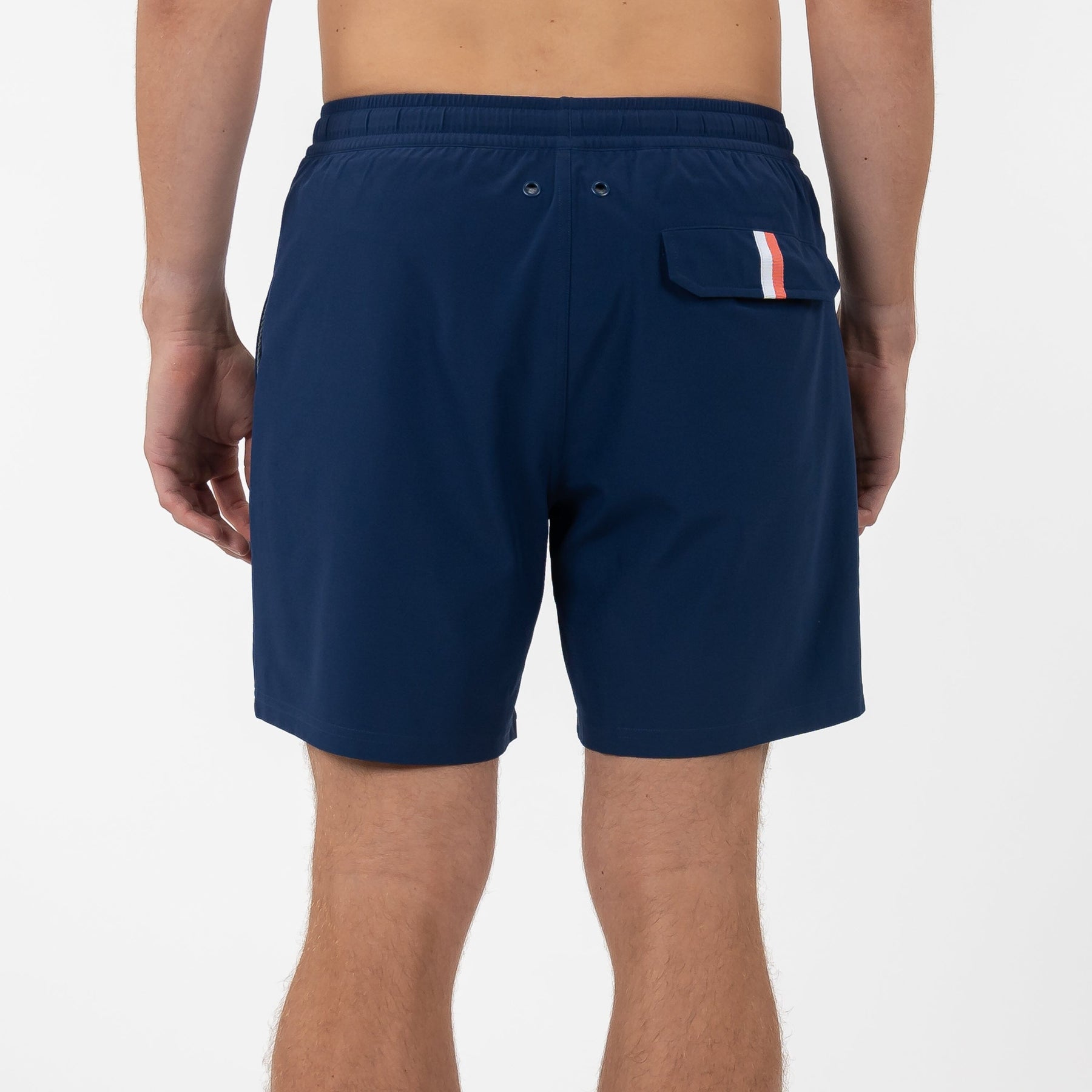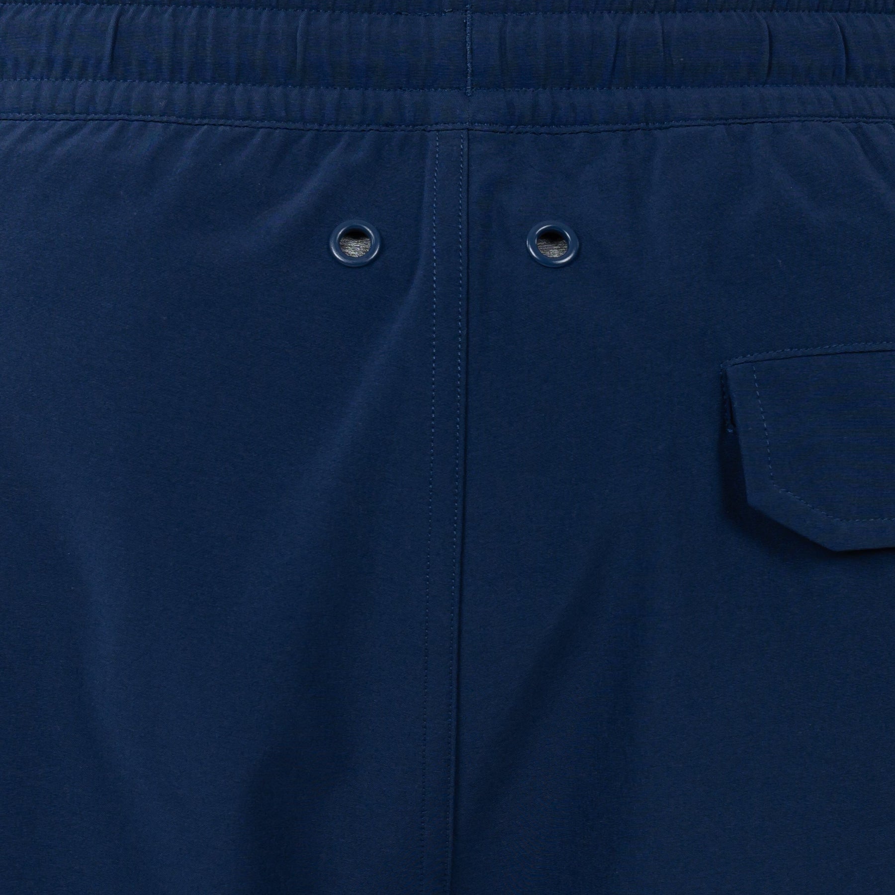 Dive into warm weather activities with the Rhoback Medley Swim Trunk. Carefully crafted for both comfort and functionality, the quick-drying, four-way stretch fabric is easy to move in and seamlessly recovers from water. Featuring our incredibly comfortable TideFlex™ liner, it offers a soft feel and additional support, while reducing chafing. Designed with a 6.5" inseam, it is made to keep up with every move whether you're at the beach, pool, lake, or anywhere in-between. With a secure Velcro back pocket and adjustable waist with drawcords, it is both functional and comfortable. Finished with the dog logo on the left leg and Rhoback Ridge on the back pocket, it pairs great with the Rhoback Tailwind Tee and Poly Hat.