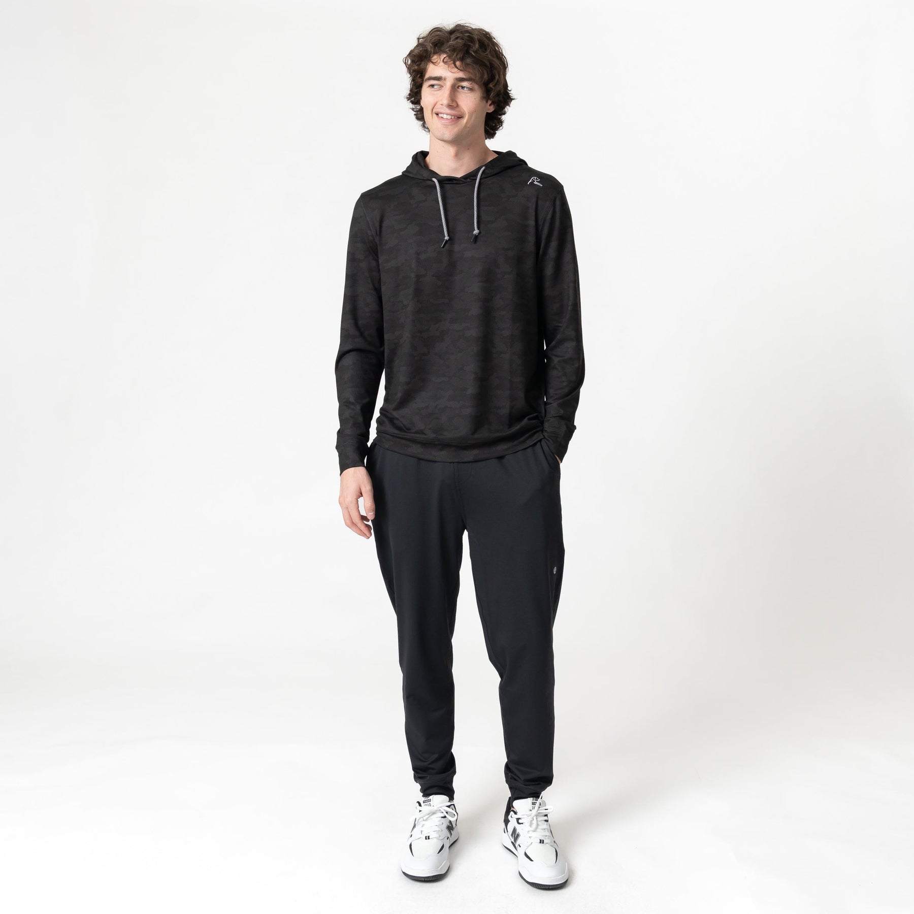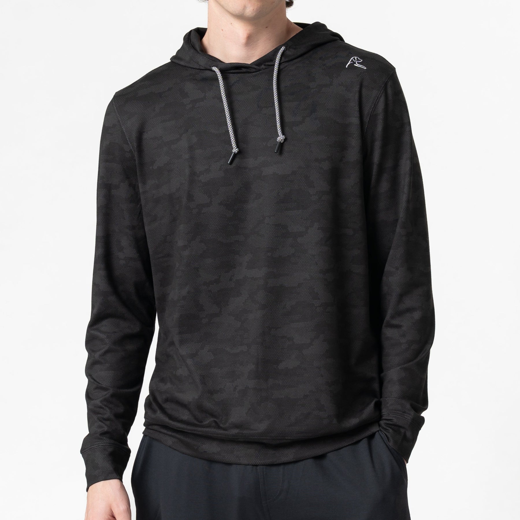 Featuring our signature VSoft™ fabric, the Hesi Performance Hoodie is designed for comfort and built for activity. The four-way stretch technology makes it easy to move in, while the moisture-wicking and breathable fabric is meant to fit your active lifestyle. Made with incredibly soft fabric and a modern comfort fit, it easily transitions throughout the day. Finished with an embroidered dog logo on the left shoulder and a grosgrain Rhoback Ridge on the hood, this hoodie pairs great with the Delta Performance Jogger and Grit Gym Shorts.