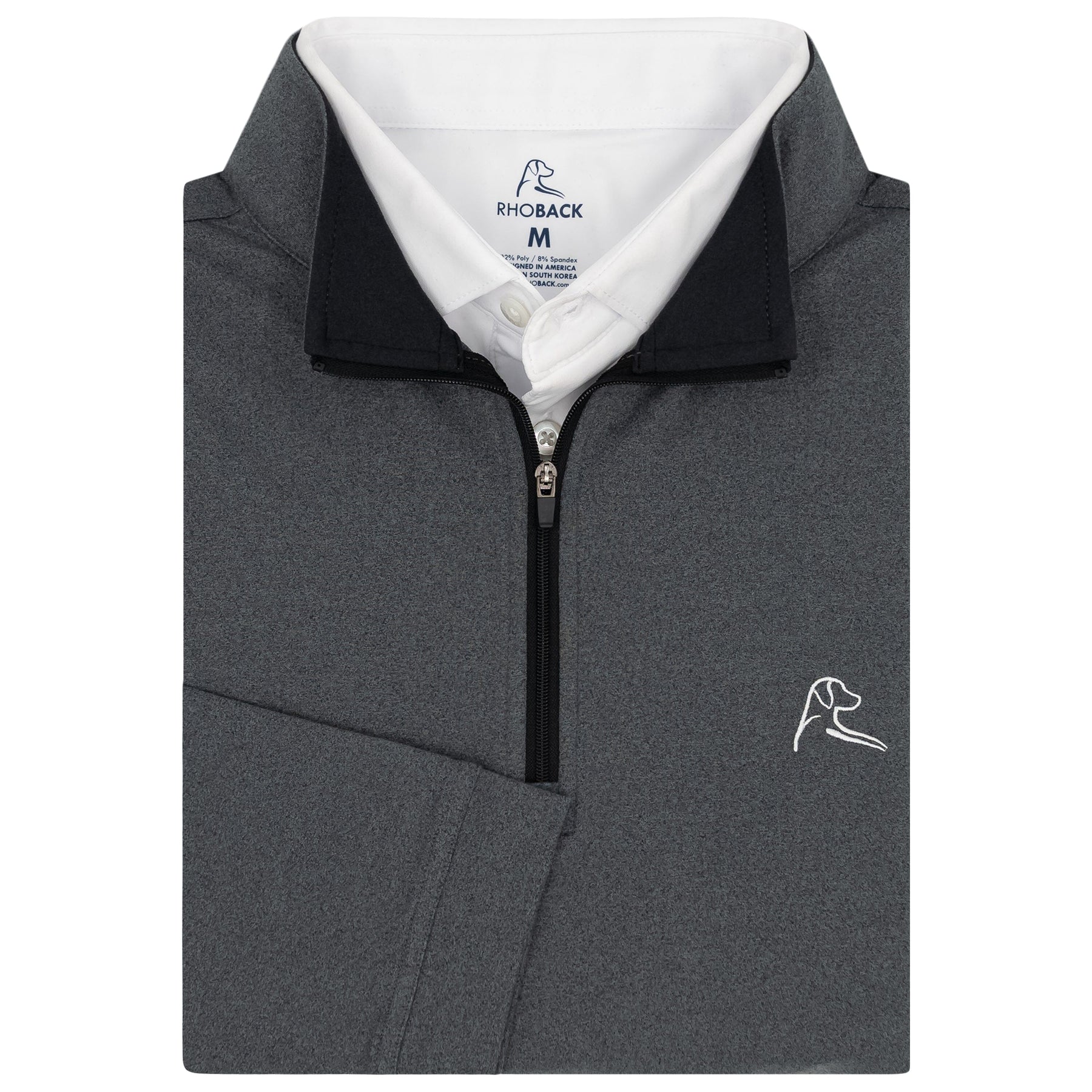 Feel comfortable and look sharp in the Heather Performance Q-Zip. Designed for those who crave activity, yet enjoy a classic look, this Q-Zip is the ultimate blend of comfort and style. Featuring four-way stretch and moisture-wicking technology, this Q-Zip is versatile, functional, and easy to move in. Made with incredibly soft fabric and a sharp comfort fit, it is an ideal secondary layer for cooler days. Finished with our dog logo embroidered on the left chest and Rhoback Ridge on the back, it pairs great with our Delta Performance Pants and Rhoback Everyday Shorts.