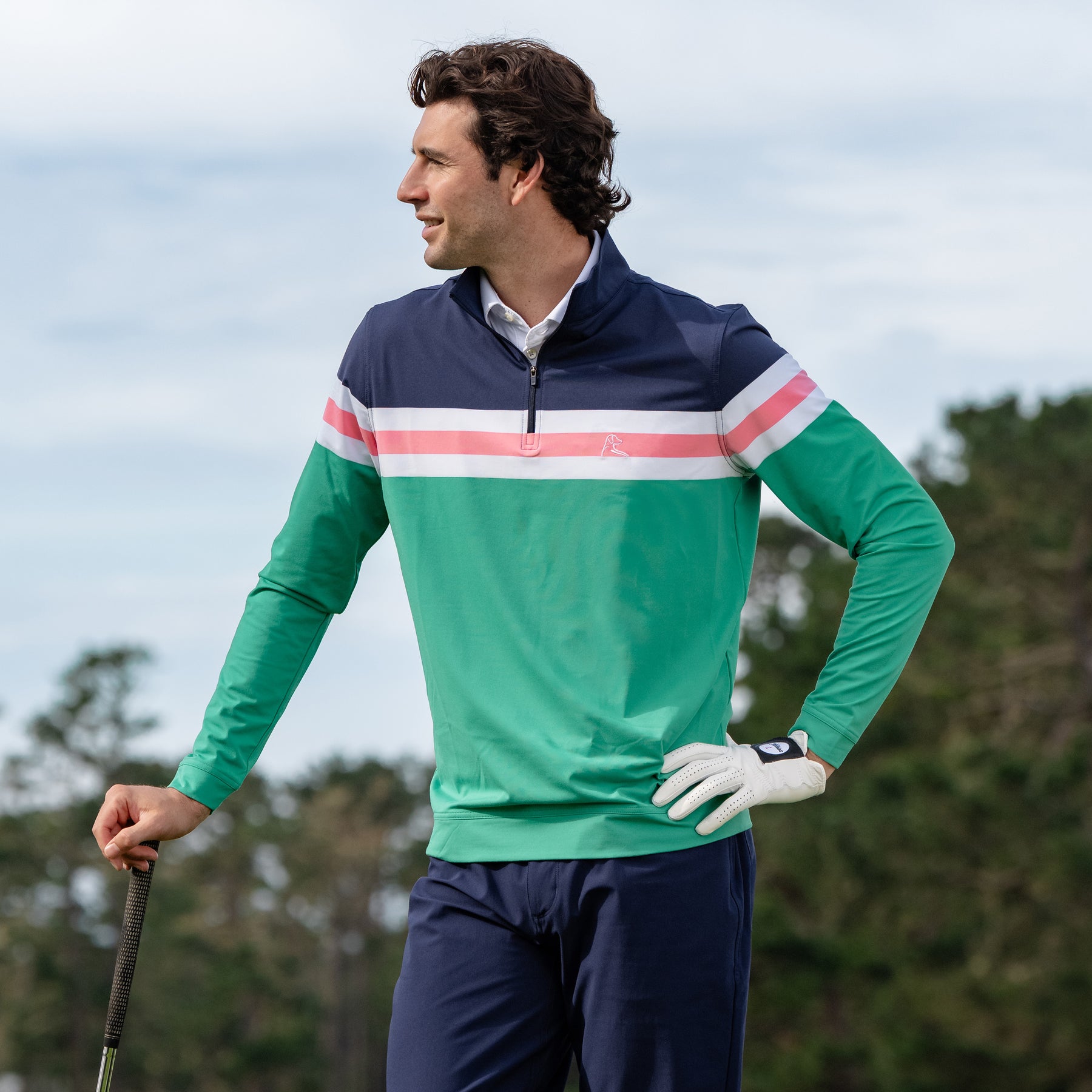 Feel comfortable and look sharp in the Horizon Block Performance Q-Zip. Designed for those who crave activity, yet enjoy a classic look, this Q-Zip is the ultimate blend of comfort and style. Featuring four-way stretch and moisture-wicking technology, this Q-Zip is versatile, functional, and easy to move in. Made with incredibly soft fabric and a sharp comfort fit, it is an ideal secondary layer for cooler days. Finished with our dog logo embroidered on the left chest and Rhoback Ridge on the back, it pairs great with our Delta Performance Pants and Rhoback Everyday Shorts.