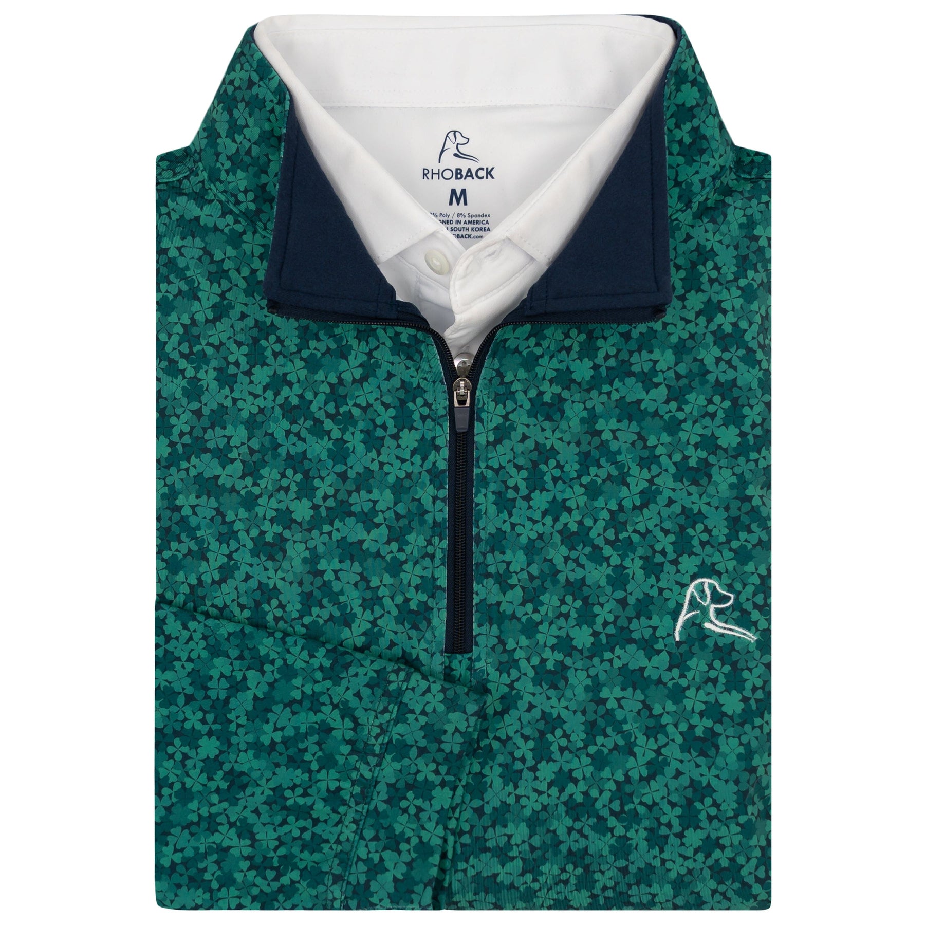 Feel comfortable and look sharp in the Irish Camo Performance Q-Zip. Designed for those who crave activity, yet enjoy a classic look, this Q-Zip is the ultimate blend of comfort and style. Featuring four-way stretch and moisture-wicking technology, this Q-Zip is versatile, functional, and easy to move in. Made with incredibly soft fabric and a sharp comfort fit, it is an ideal secondary layer for cooler days. Finished with our dog logo embroidered on the left chest and Rhoback Ridge on the back, it pairs great with our Delta Performance Pants and Rhoback Everyday Shorts.