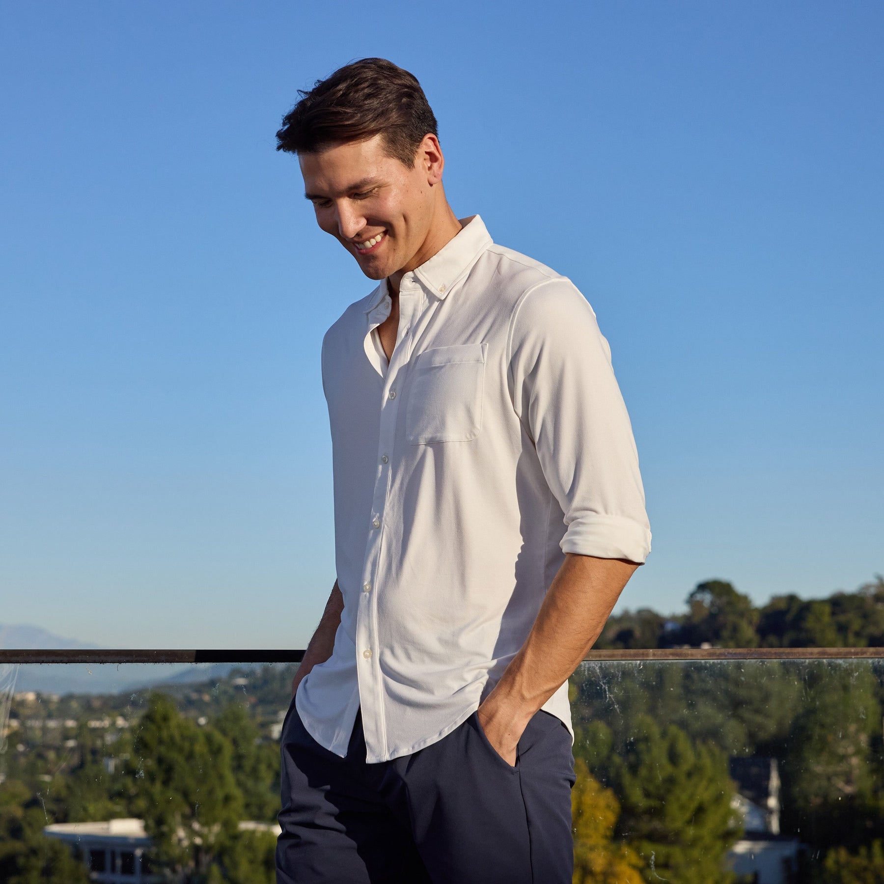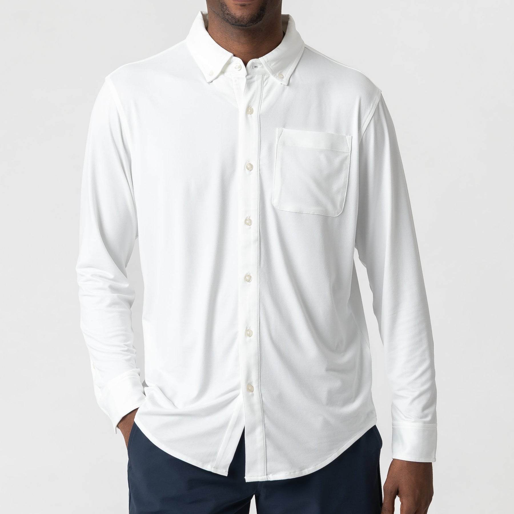 Stay sharp and comfortable in The Tailwind Performance Sport Shirt. Made with our incredibly soft and lightweight SkyKnit™ fabric, this shirt delivers four-way stretch and wrinkle resistance for easy, all-day wear. Combining comfort and style, it features a button-down collar that holds its shape and a curved hem for a more casual fit and look. Ready for an evening out, The Tailwind Performance Sport Shirt is designed to keep up.