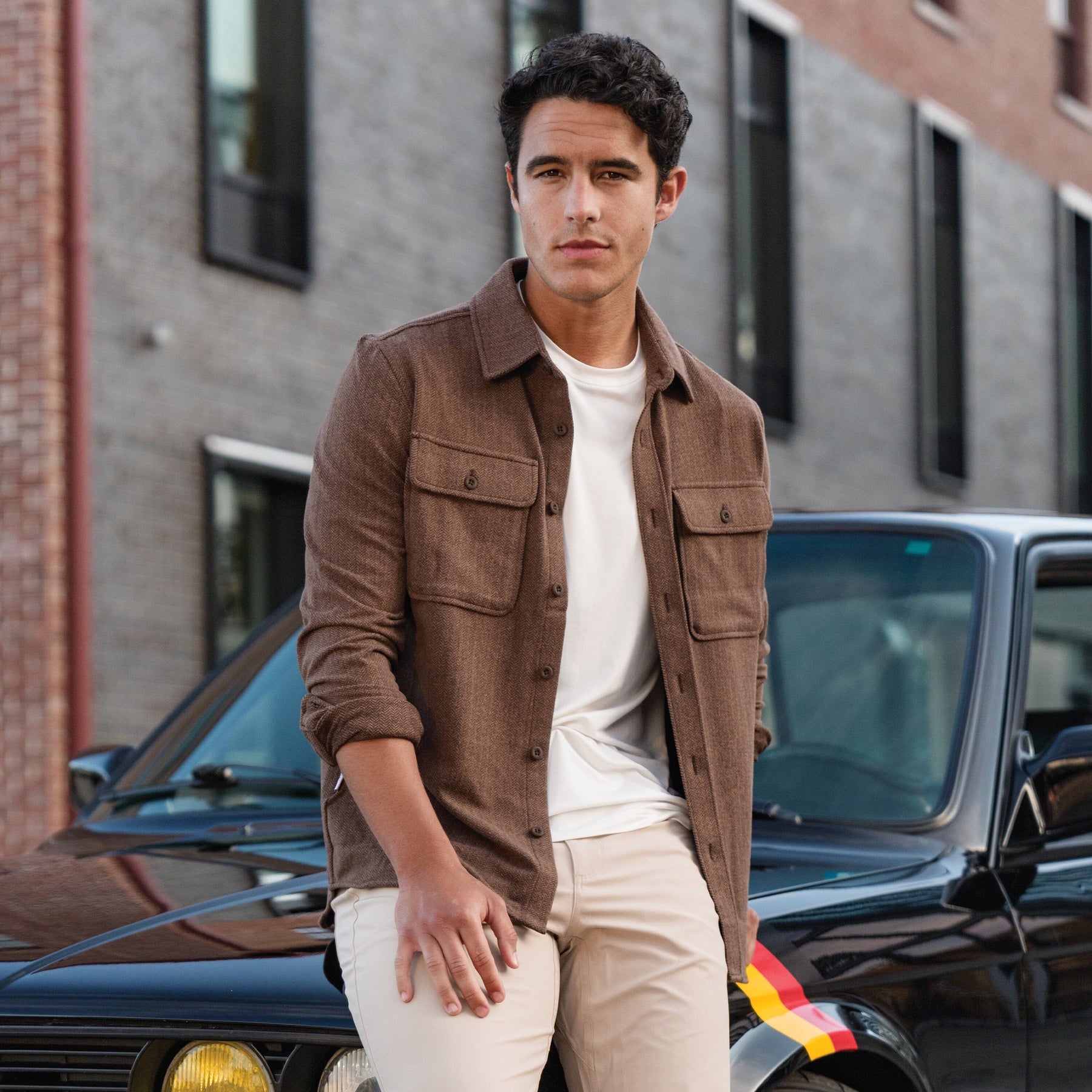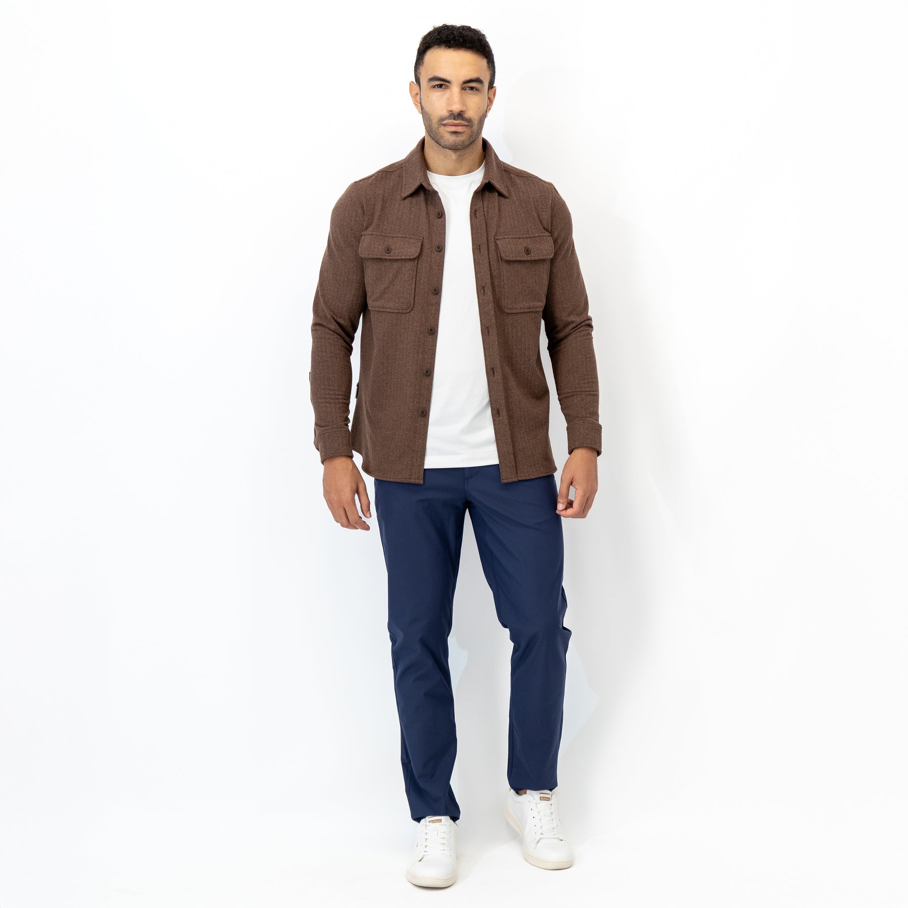The Sheffield Shirt is crafted for a refined, everyday look with the comfort and flexibility of our soft, stretchy Herringbone Jacquard fabric. Designed as a versatile top layer, it pairs effortlessly with your go-to tees and polos. Dual chest pockets with button closures and a crisp spread collar provide a clean, polished look, while the modern fit makes it easy to dress up or down. Whether you’re headed into the city or winding down after a round, The Sheffield Shirt brings elevated comfort to any setting.