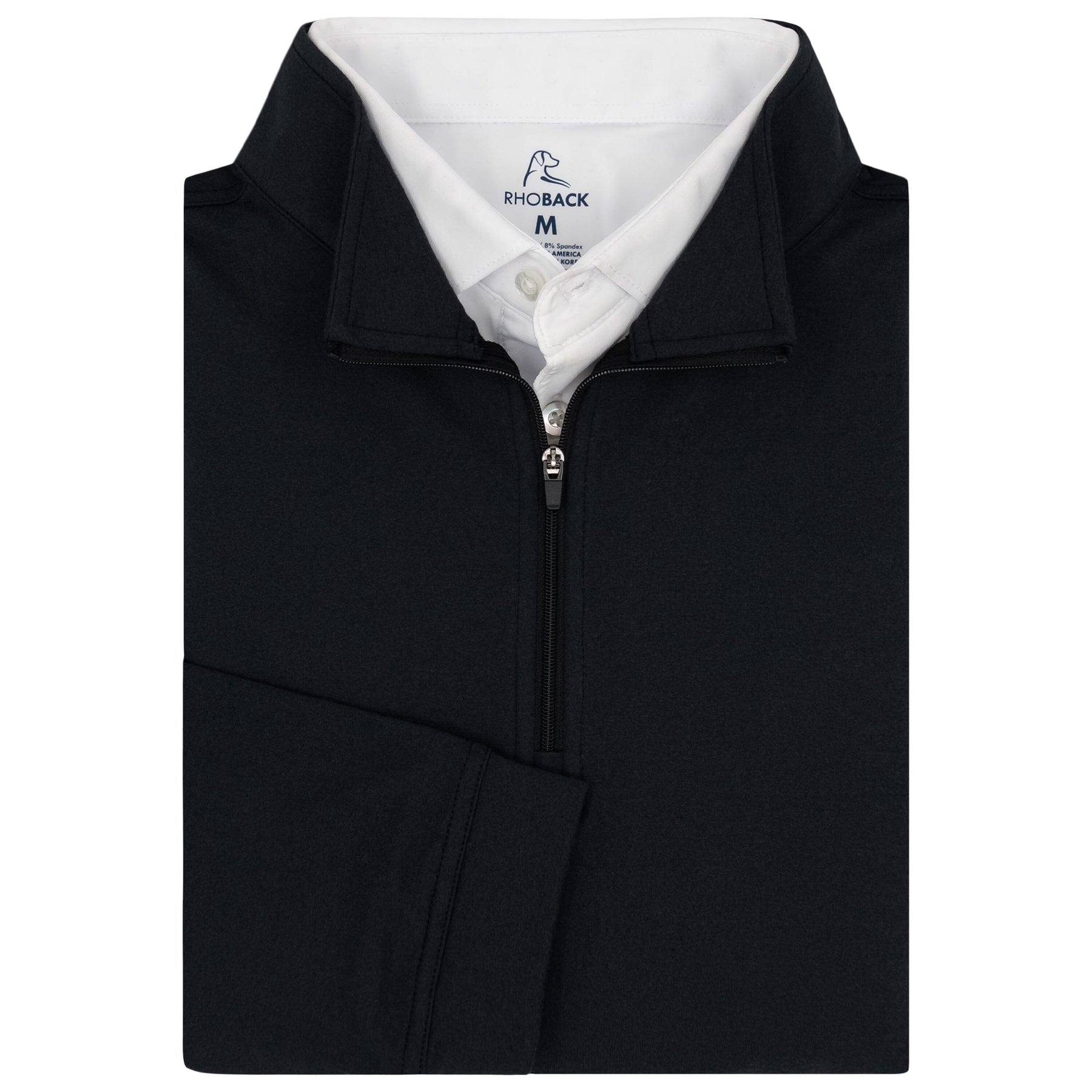 Feel comfortable and look sharp in the Solid Performance Q-Zip. Designed for those who crave activity, yet enjoy a classic look, this Q-Zip is the ultimate blend of comfort and style. Featuring four-way stretch and moisture-wicking technology, this Q-Zip is versatile, functional, and easy to move in. Made with incredibly soft fabric and a sharp comfort fit, it is an ideal secondary layer for cooler days. Finished with the Rhoback Ridge on the back, it pairs great with our Delta Performance Pants and Rhoback Everyday Shorts.