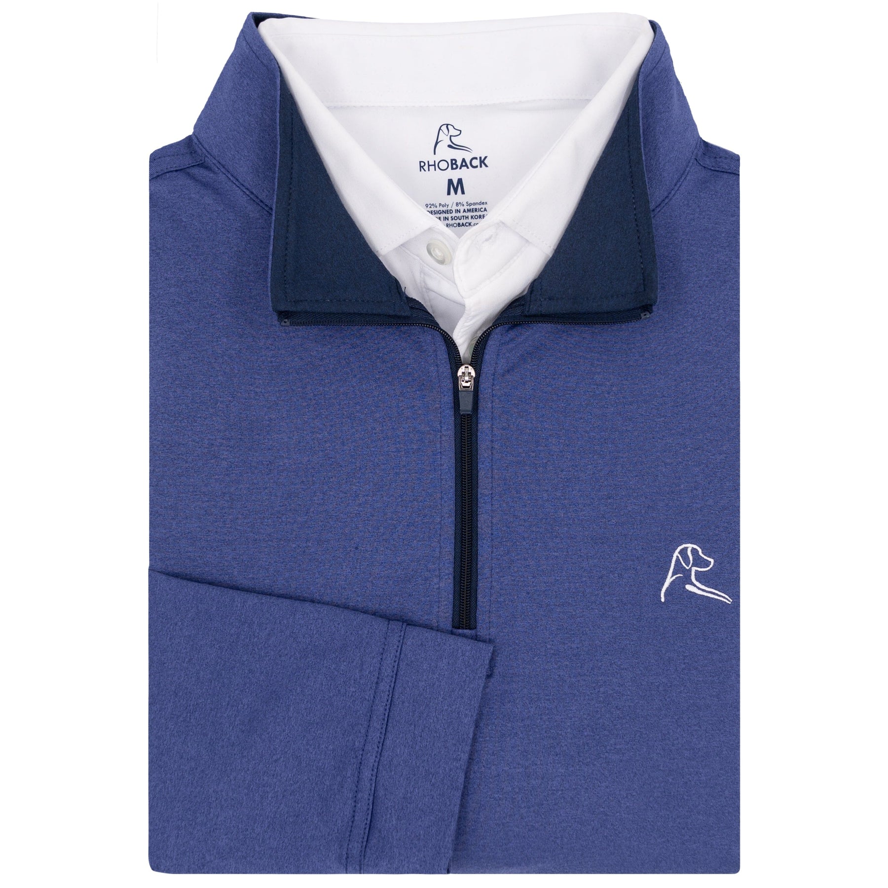 Feel comfortable and look sharp in the Heather Performance Q-Zip. Designed for those who crave activity, yet enjoy a classic look, this Q-Zip is the ultimate blend of comfort and style. Featuring four-way stretch and moisture-wicking technology, this Q-Zip is versatile, functional, and easy to move in. Made with incredibly soft fabric and a sharp comfort fit, it is an ideal secondary layer for cooler days. Finished with our dog logo embroidered on the left chest and Rhoback Ridge on the back, it pairs great with our Delta Performance Pants and Rhoback Everyday Shorts.