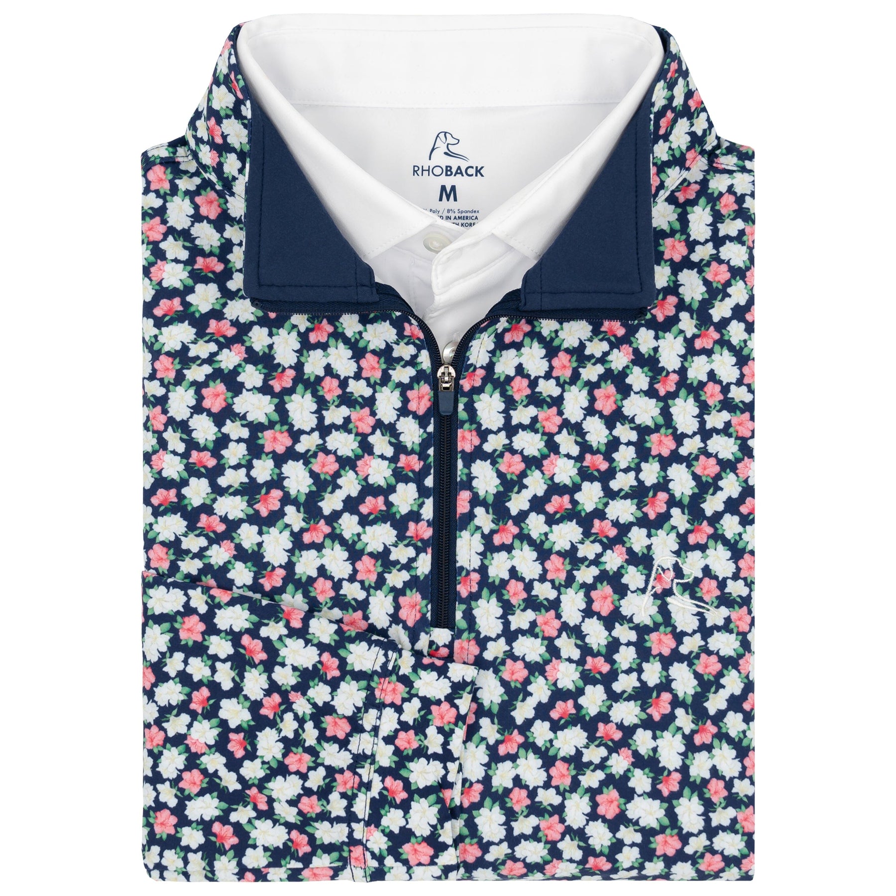 Feel comfortable and look sharp in the Azalea Performance Q-Zip. Designed for those who crave activity, yet enjoy a classic look, this Q-Zip is the ultimate blend of comfort and style. Featuring four-way stretch and moisture-wicking technology, this Q-Zip is versatile, functional, and easy to move in. Made with incredibly soft fabric and a sharp comfort fit, it is an ideal secondary layer for cooler days. Finished with our dog logo embroidered on the left chest and Rhoback Ridge on the back, it pairs great with our Delta Performance Pants and Rhoback Everyday Shorts.