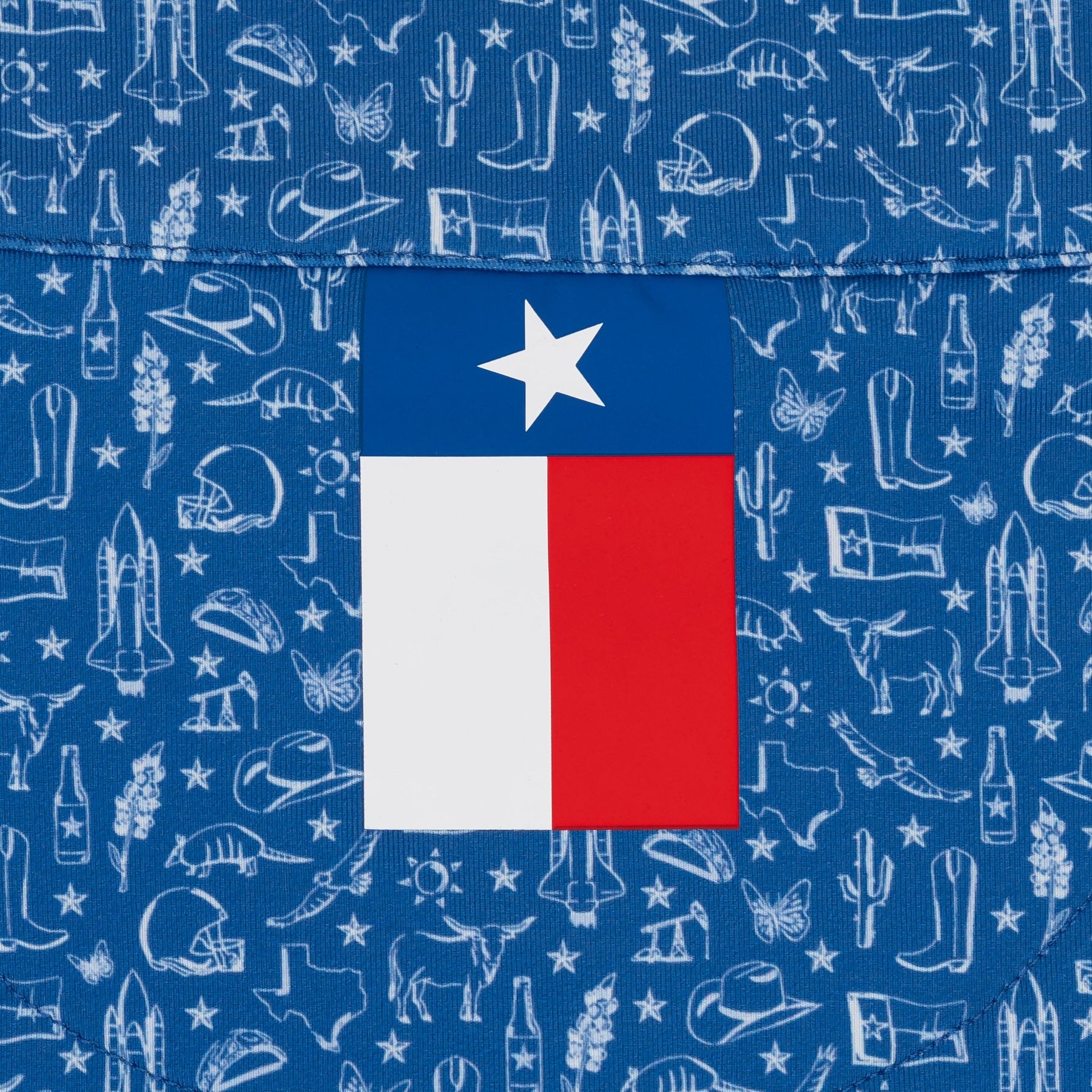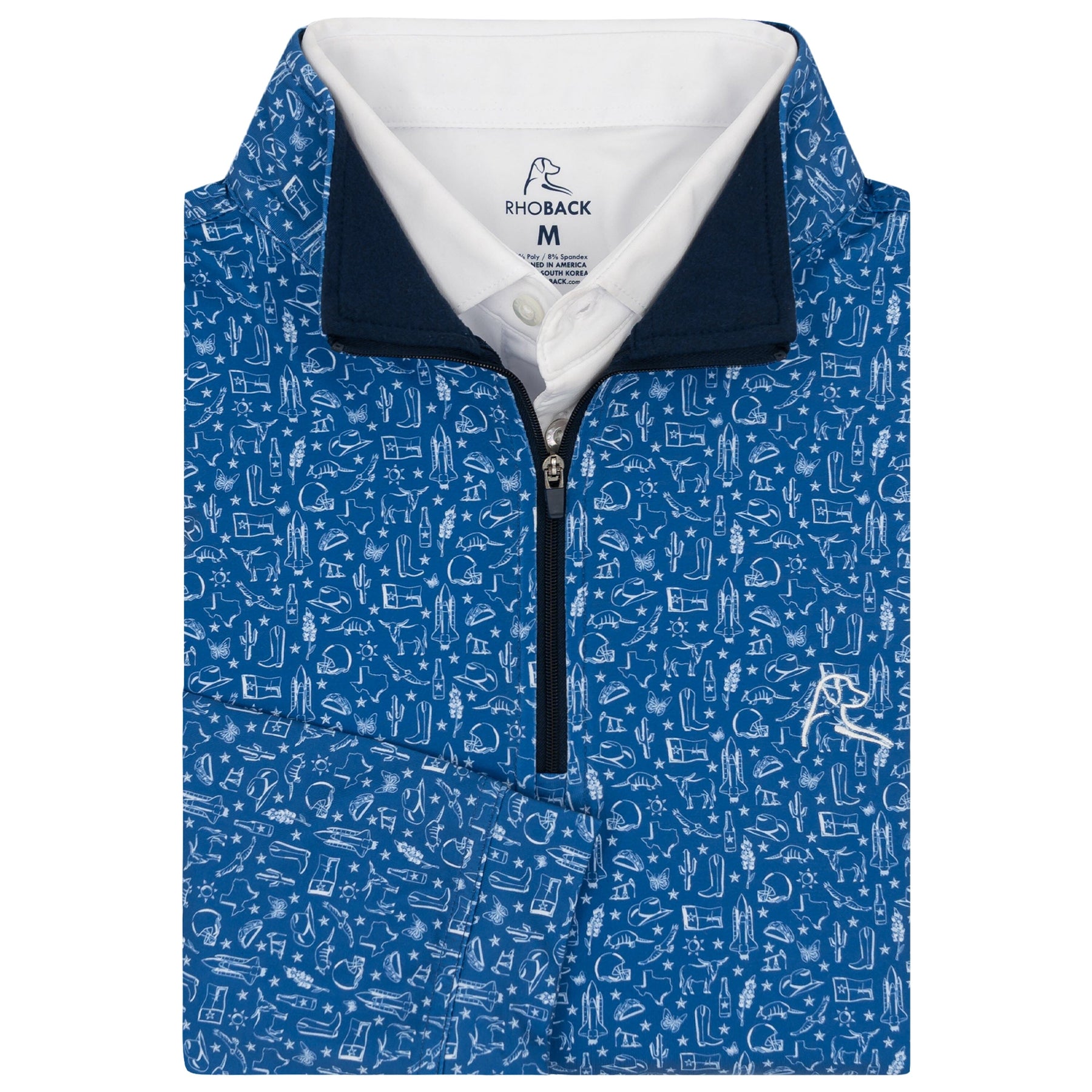 Feel comfortable and look sharp in the Texan Performance Q-Zip. Designed for those who crave activity, yet enjoy a classic look, this Q-Zip is the ultimate blend of comfort and style. Featuring four-way stretch and moisture-wicking technology, this Q-Zip is versatile, functional, and easy to move in. Made with incredibly soft fabric and a sharp comfort fit, it is an ideal secondary layer for cooler days. Finished with our dog logo embroidered on the left chest and Texas state flag on the back, it pairs great with our Delta Performance Pants and Rhoback Everyday Shorts.