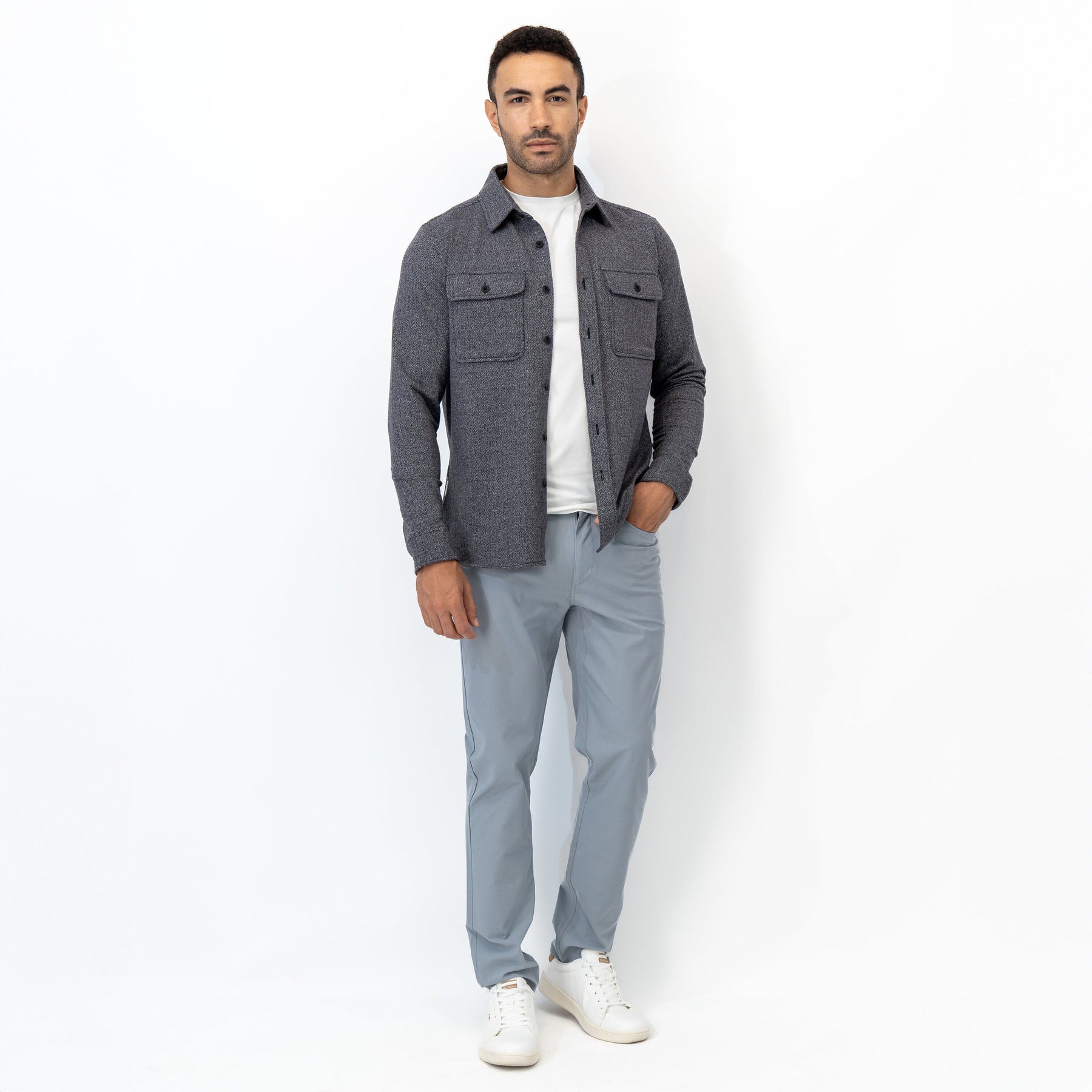 The Sheffield Shirt is crafted for a refined, everyday look with the comfort and flexibility of our soft, stretchy Herringbone Jacquard fabric. Designed as a versatile top layer, it pairs effortlessly with your go-to tees and polos. Dual chest pockets with button closures and a crisp spread collar provide a clean, polished look, while the modern fit makes it easy to dress up or down. Whether you’re headed into the city or winding down after a round, The Sheffield Shirt brings elevated comfort to any setting.