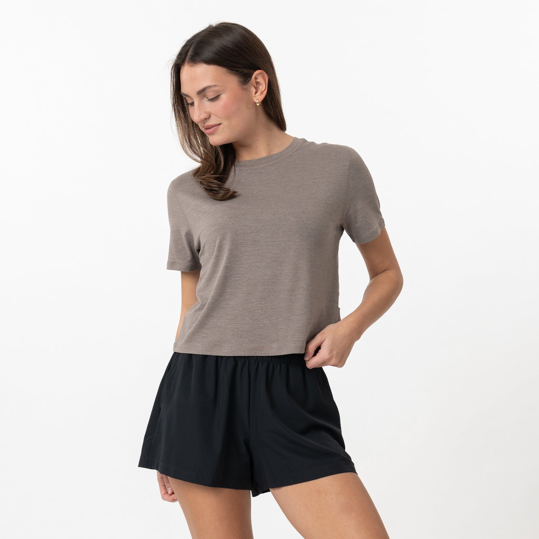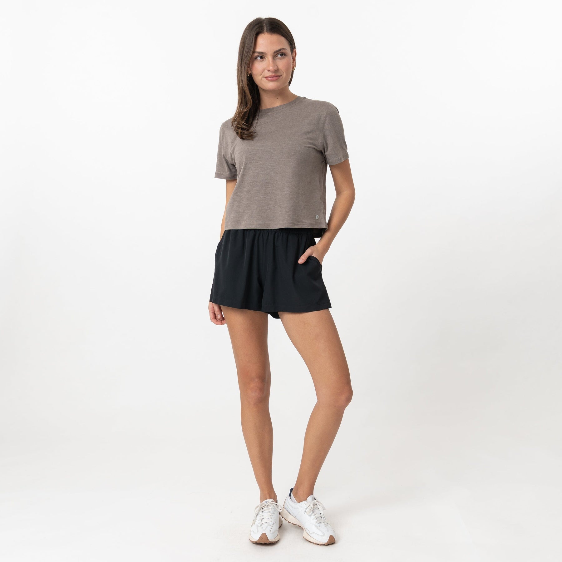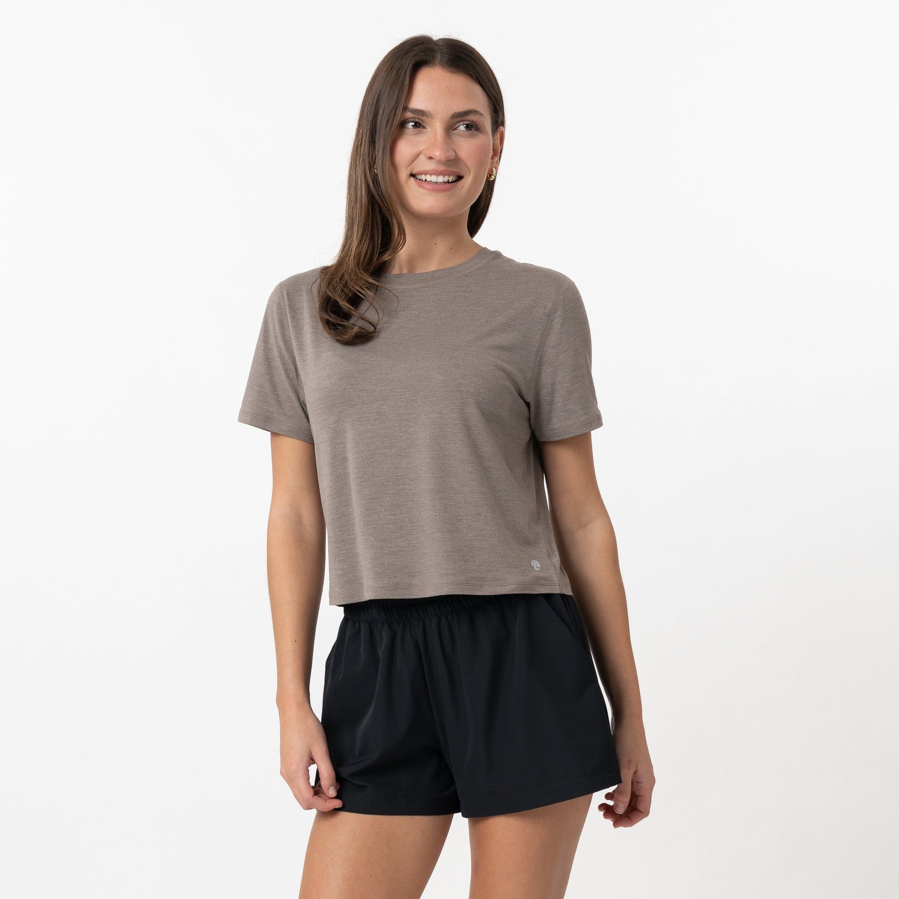 The ultimate blend of comfort and versatility, the Rhoback Drift Performance Crop Tee is our softest tee yet. Crafted from our signature SkyKnit™ fabric, it is incredibly soft, lightweight and breathable. The loose fit and moderate crop at the waist paired with four-way stretch technology and wrinkle-free material makes it great for everyday activities. Finished with a small circle dog logo on the front bottom left, it pairs perfectly with the Rhoback Tempo Joggers and Steffi Active Skort.