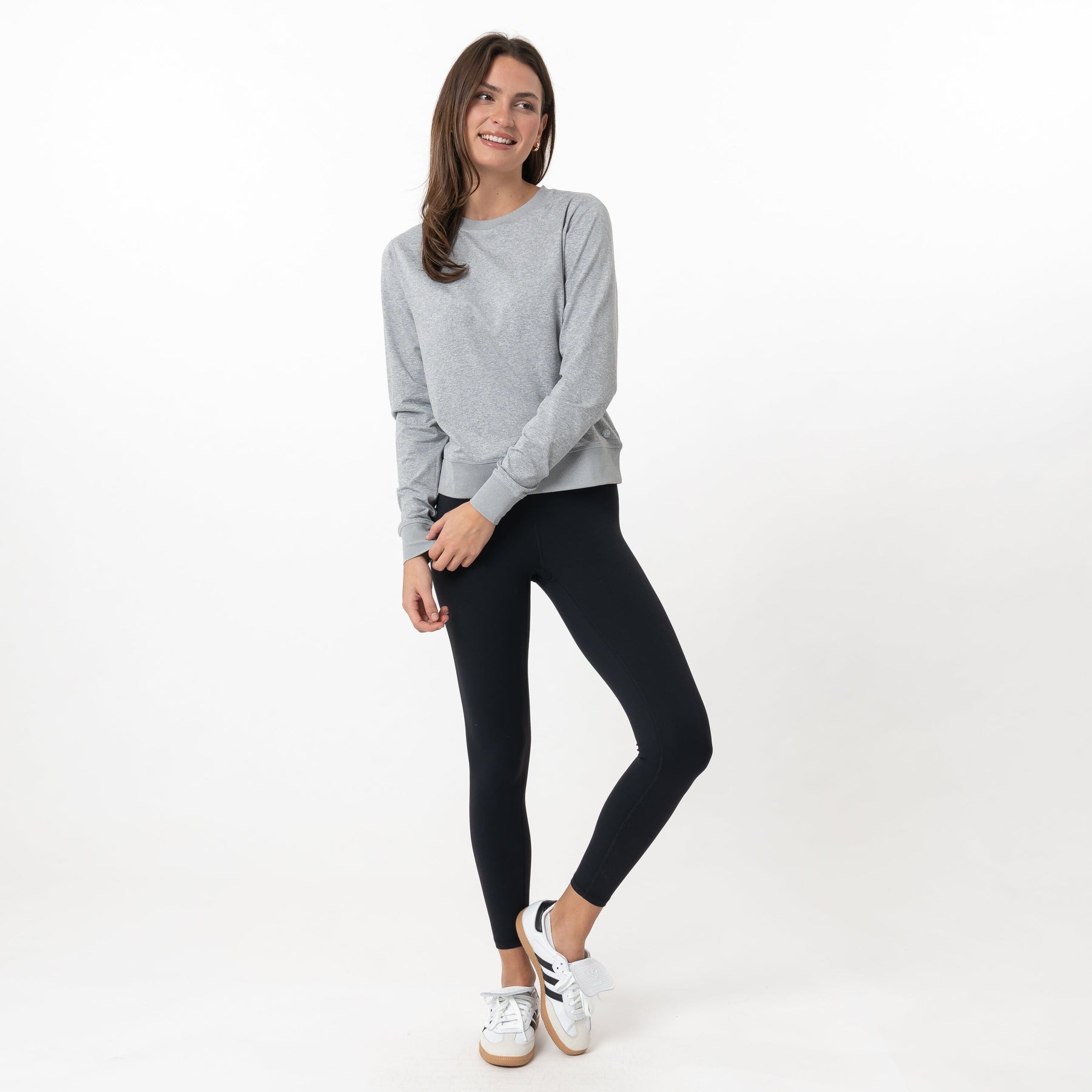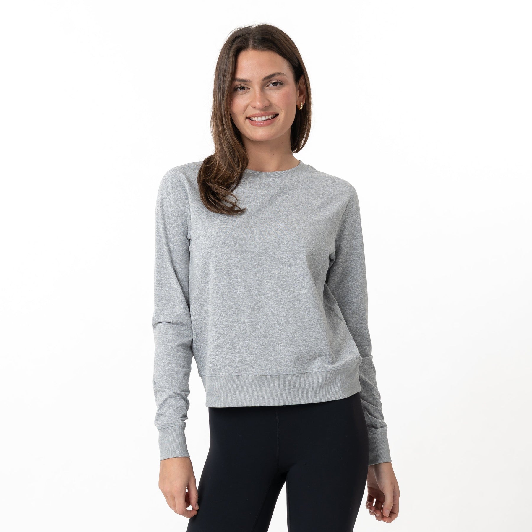 The perfect blend of comfort, style, and sustainability, the Rhoback Swift Performance Crew is incredibly soft and versatile. Made with our signature ButterFlex fabric, the Swift Crew in heathered light blue is designed to seamlessly transition throughout the day. With four-way stretch and moisture-wicking technology, it is built for activity. Made with lightweight, recycled materials it is also environmentally friendly and exceptionally breathable. Finished with a circle dog logo, v-stich detail below the collar, and the Rhoback Ridge on the back, it fits perfectly over a Performance Tee or Polo when paired with our Active Skort.
