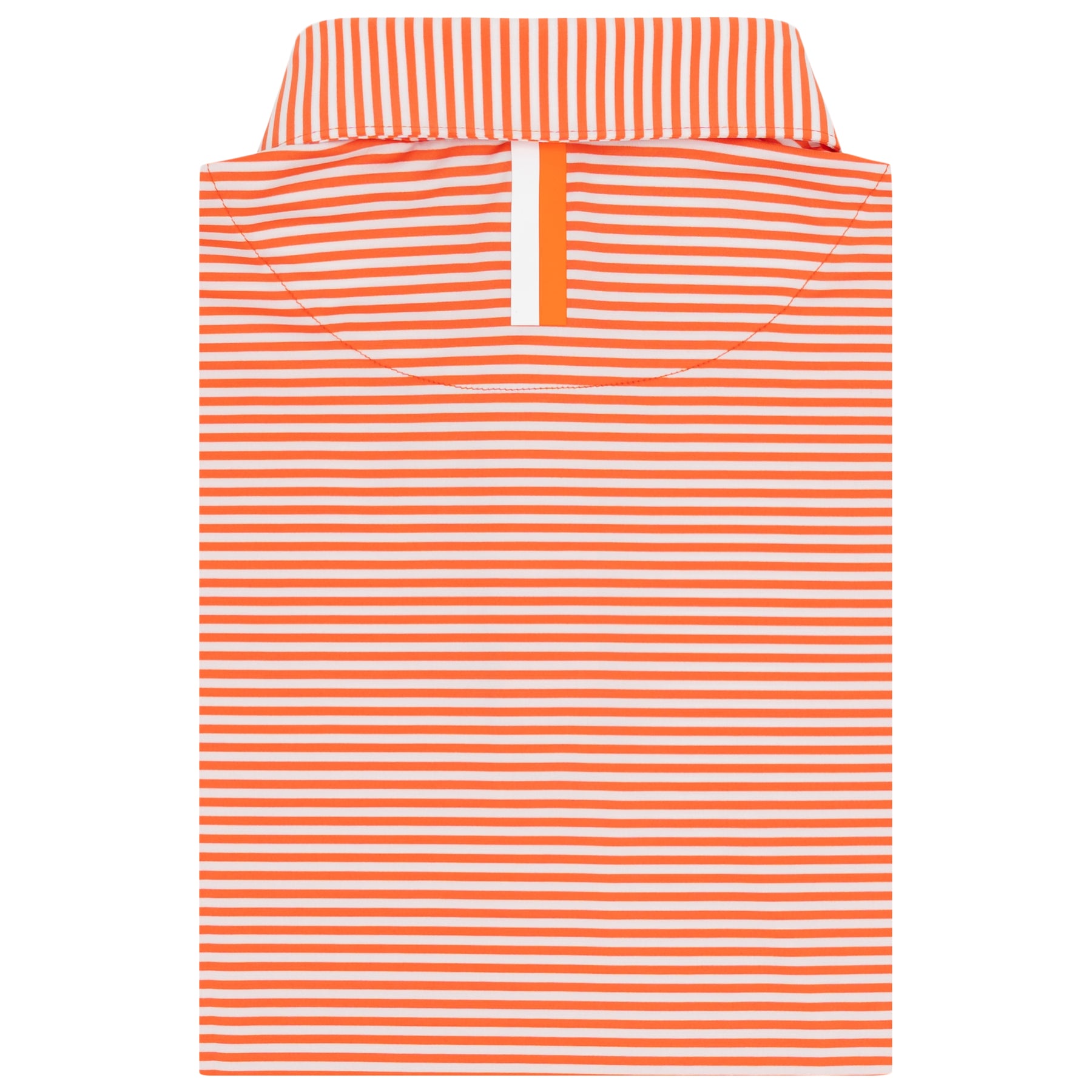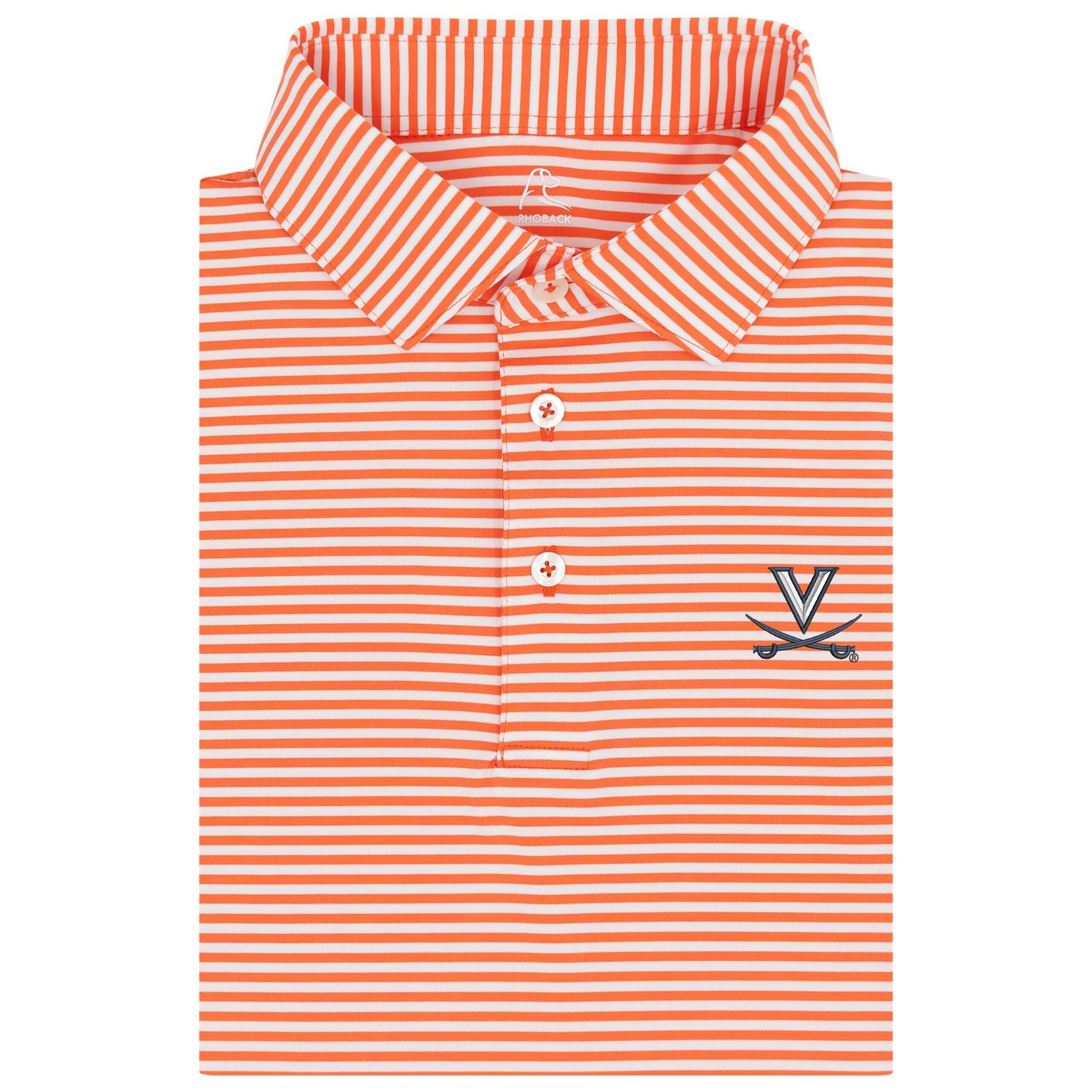 Get up! It's gameday in The Birdie Stripe Collegiate Polo. Built for activity, this polo features breathable fabric with moisture-wicking and four-way stretch technology that will keep you cool and ready to move. With a crisp collar that holds its shape, wrinkle-free material, and UPF sun-protection, these polos are made to be worn throughout gameday. Designed with a sharp comfort fit it can also be worn untucked or tucked. Complete with an UVA logo on the left chest and Rhoback Ridge on the back, this polo fits perfectly under one of our UVA gameday performance pullovers!
