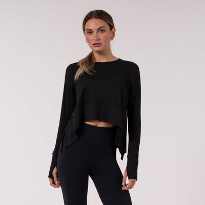 Drift Long Sleeve Flowy Tee | Solid - Midnight Black