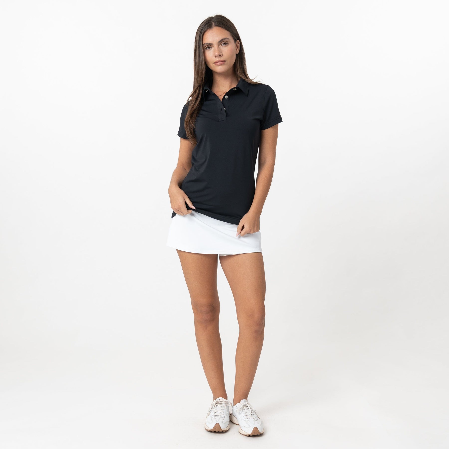 Performance meets style with the incredibly comfortable Women's Solid Performance Polo. Built for activity, this polo features breathable fabric with moisture-wicking and four-way stretch technology that will keep you cool and ready to move. With a crisp collar that holds its shape, wrinkle-free material, and UPF sun-protection, these polos are made to be worn on the course or around town. Designed with a classic comfort fit it can also be worn untucked or tucked. Complete with our Rhoback Ridge on the back, this polo pairs great with our Vista Active Skort.